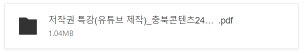 충북콘텐츠코리아랩 저작권 특강(5/8)자료입니다. 수강생분들께서는 '강의 중에' 다운 받으시기 바랍니다. 자료는 외부 유출하지 말아주시기 바랍니다.