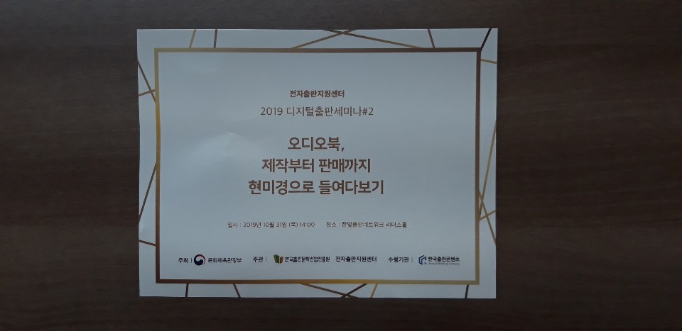 오디오북과 저작권에 관한 세미나가 지난 10월 31일에 한국출판문화산업진흥원 전자출판지원센터 주관으로 개최되었습니다. 오디오북의 제작부터 저작권까지 전 분야에 걸친 내용을 다루었는데요. 한국저작권교육센터에서는 오디오북 저작권 세션을 맡아서 발표하게 되었습니다.