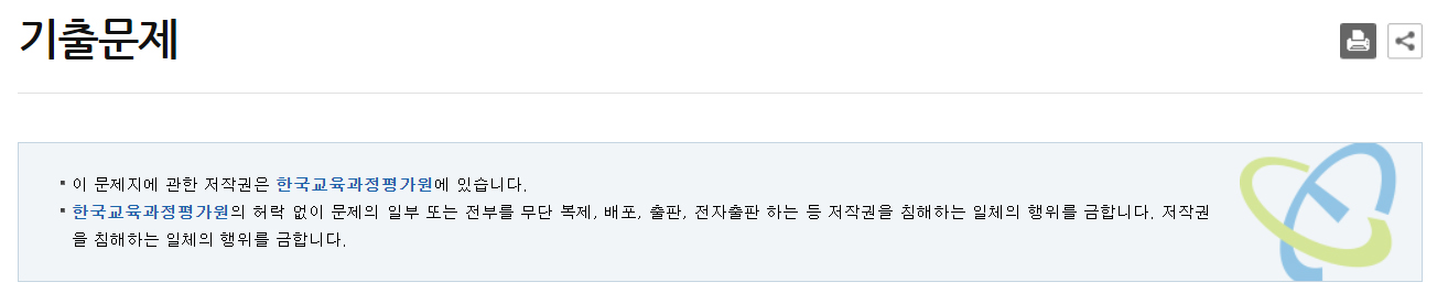 다시 말하지만 수능 기출문제는 저작권이 있다. 개인은 자유롭게 다운받아서 문제풀이를 해도 된다. 출판은 자유롭게 할 수 없다. 평가원에서 출판에 관하여 자유 사용을 허용하지 않기 때문이다.